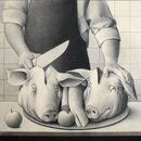 Those entitled Pigs & Butchers Series were created specifically to feature in a video entitled I See You with music by Vanquish Evil. The video can be viewed via this website in the Videos section, or go directly to YouTube channel YOUTUBE/JANELEWISARTIST